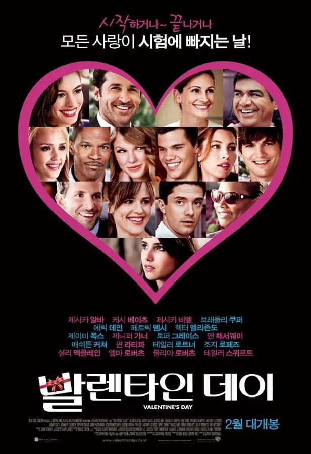 2010년 개봉한 영화 **발렌타인 데이(Valentine’s Day)**는 사랑이 가득한 하루를 배경으로 다양한 커플들의 이야기를 그린 로맨틱 코미디 영화다. "러브 액츄얼리" 스타일의 옴니버스 형식으로 구성된 이 영화는, 각각의 이야기가 교차하며 사랑의 여러 모습을 보여준다.